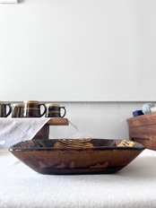 和食のメイン皿として、またご家庭での日常的なお使いでしたら、オーブンも可能ですので、グラタン皿などにもおすすめ。山口さんの代表的な作風でもあるスリップのうつわは、使いやすく、華やかさもございますので、ご結婚や新居のお祝いなど、贈り物にも喜ばれる作品です。
