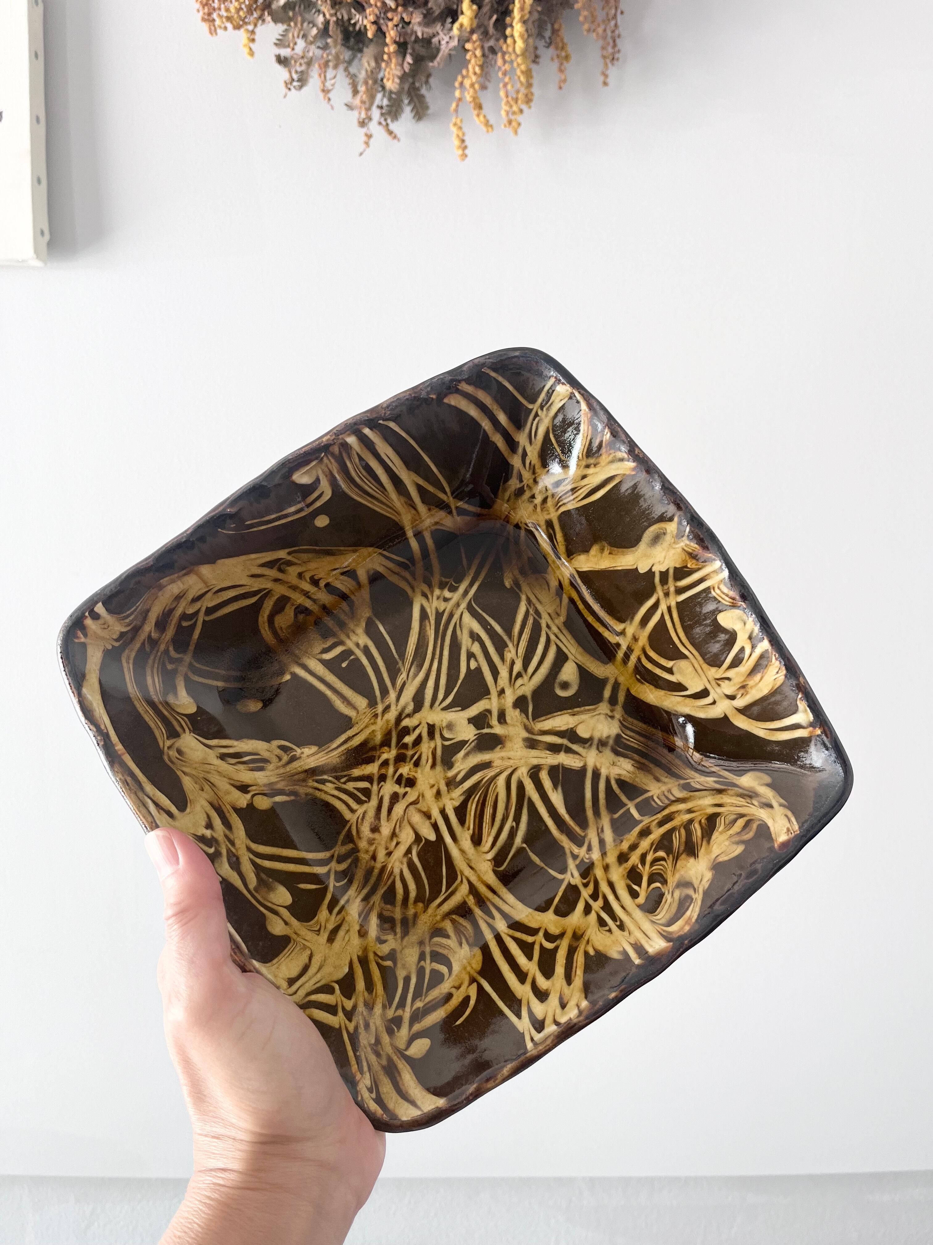 和食のメイン皿として、またご家庭での日常的なお使いでしたら、オーブンも可能ですので、グラタン皿などにもおすすめ。山口さんの代表的な作風でもあるスリップのうつわは、使いやすく、華やかさもございますので、ご結婚や新居のお祝いなど、贈り物にも喜ばれる作品です。
