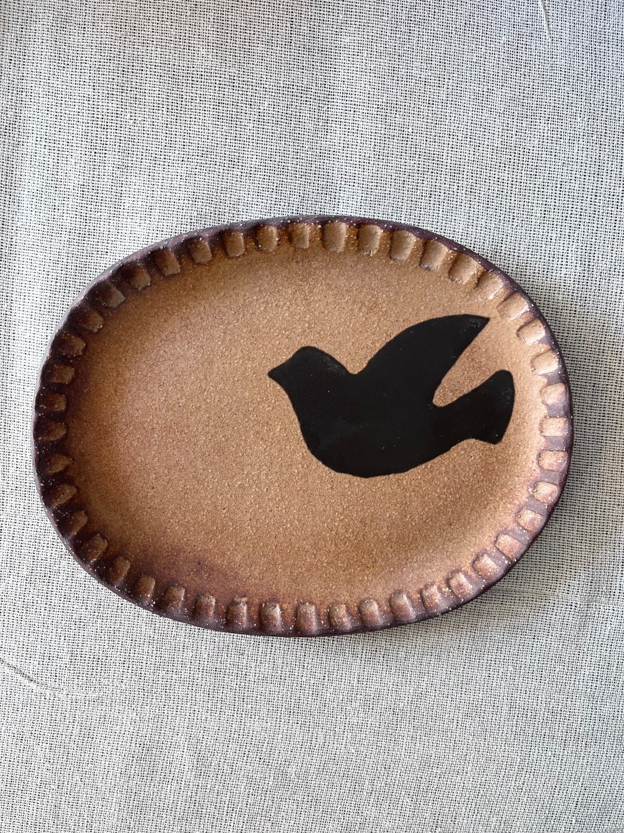沖縄の陶芸家、工房ことりのさんのオーバルプレート、茶色。