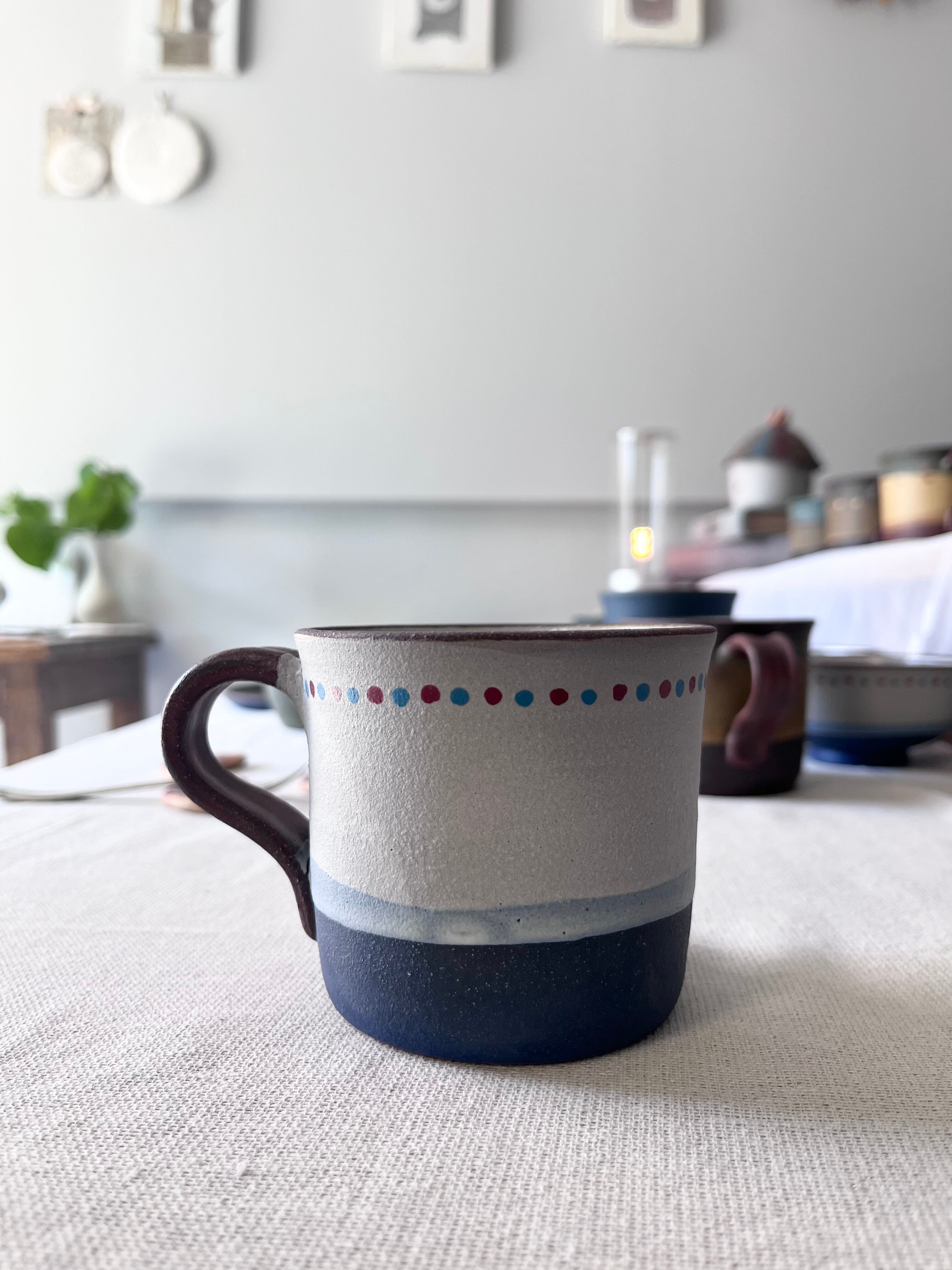 沖縄の陶芸家、工房ことりのさんのマグカップ。