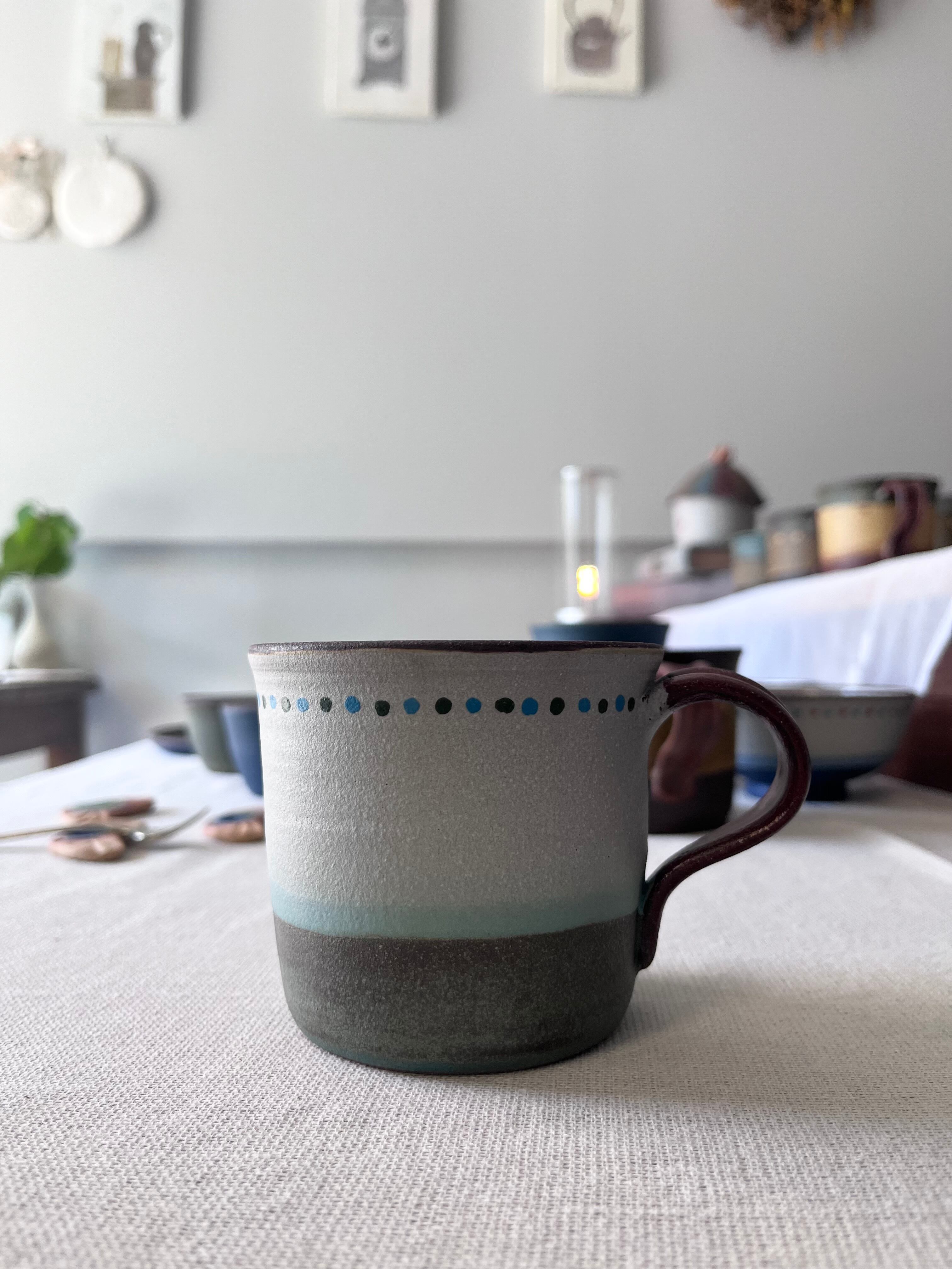沖縄の陶芸家、工房ことりのさんのマグカップ。