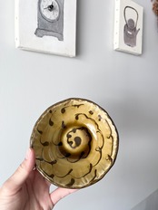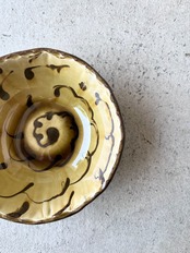 くるくると描かれたスリップの絵柄が愛らしい作品。具沢山スープ、お一人用のサラダボウル、フルーツやスコップケーキも◎程よい深さが使いやすい丸鉢ですので、贈り物にもおすすめです。