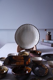 手作りの作品のため、多少の歪みやがたつき、釉薬(色をつける薬)が溜まっている箇所や、ピンホールがある場合もございます。ご了承くださいませ。