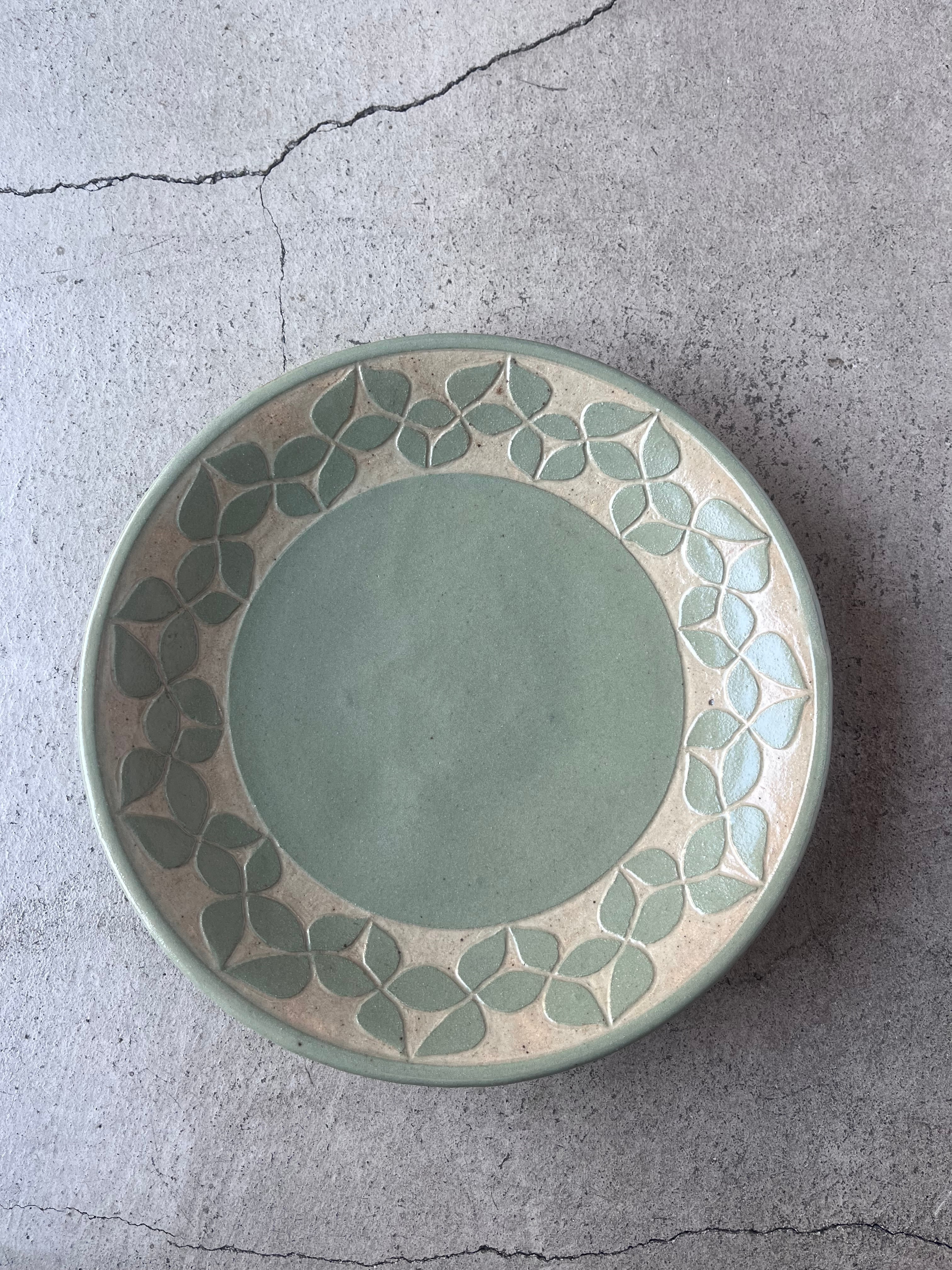 【岡田崇人】掻落(アサギ・フチ)8寸皿 約24㎝ | 主菜皿・ワンプレートに