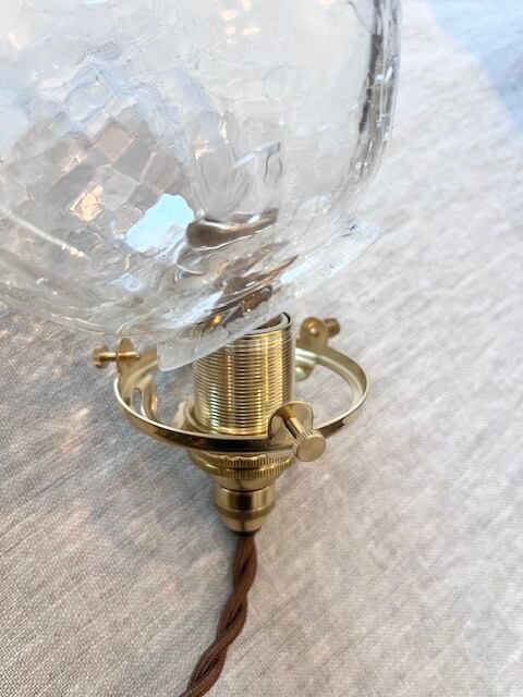 岐阜県のガラス作家、安土草多さんのペンダントライト。こちらは、クラックの入った丸い球タイプになります。